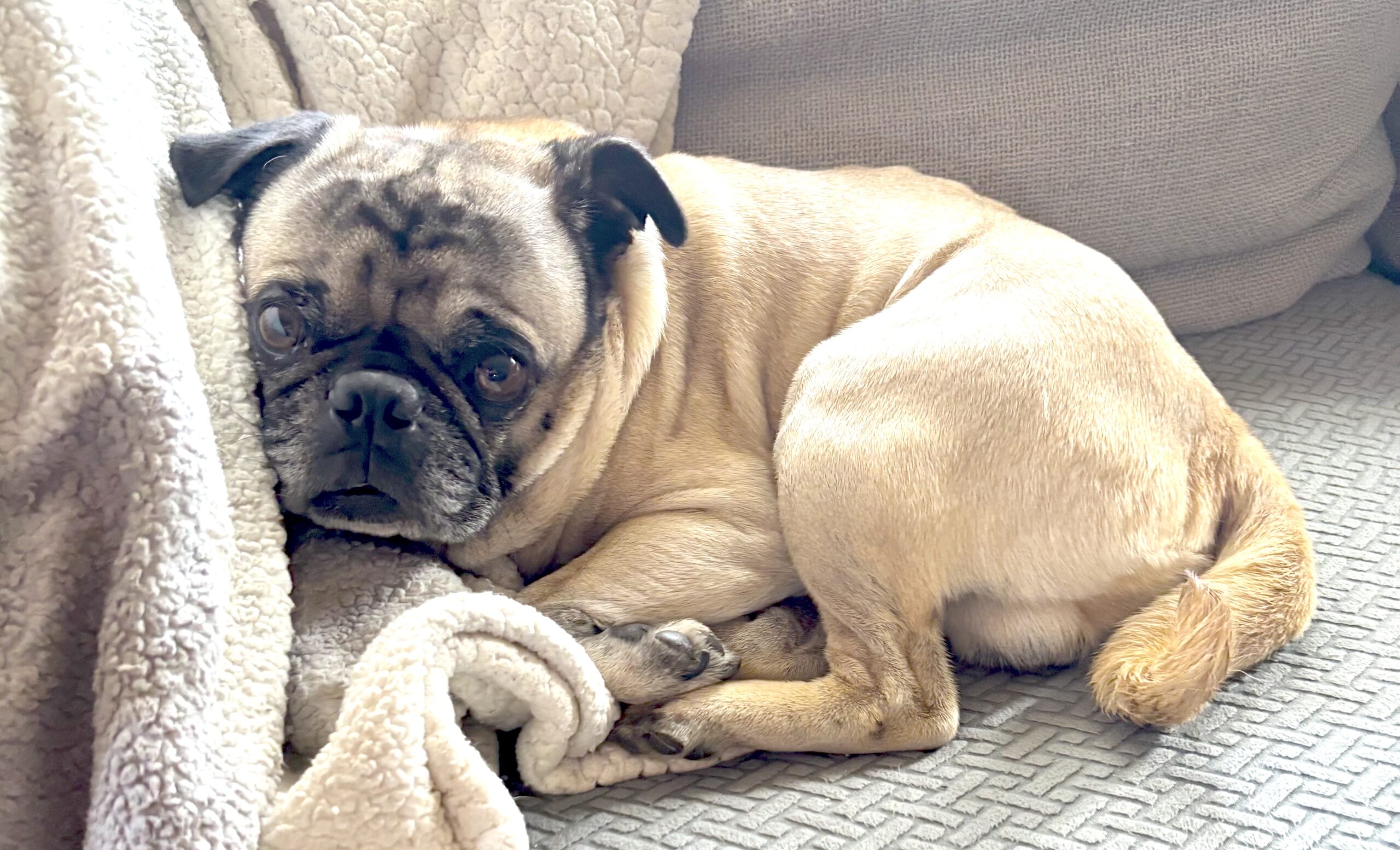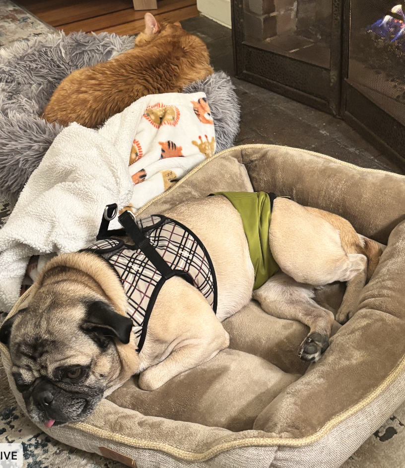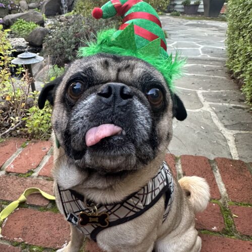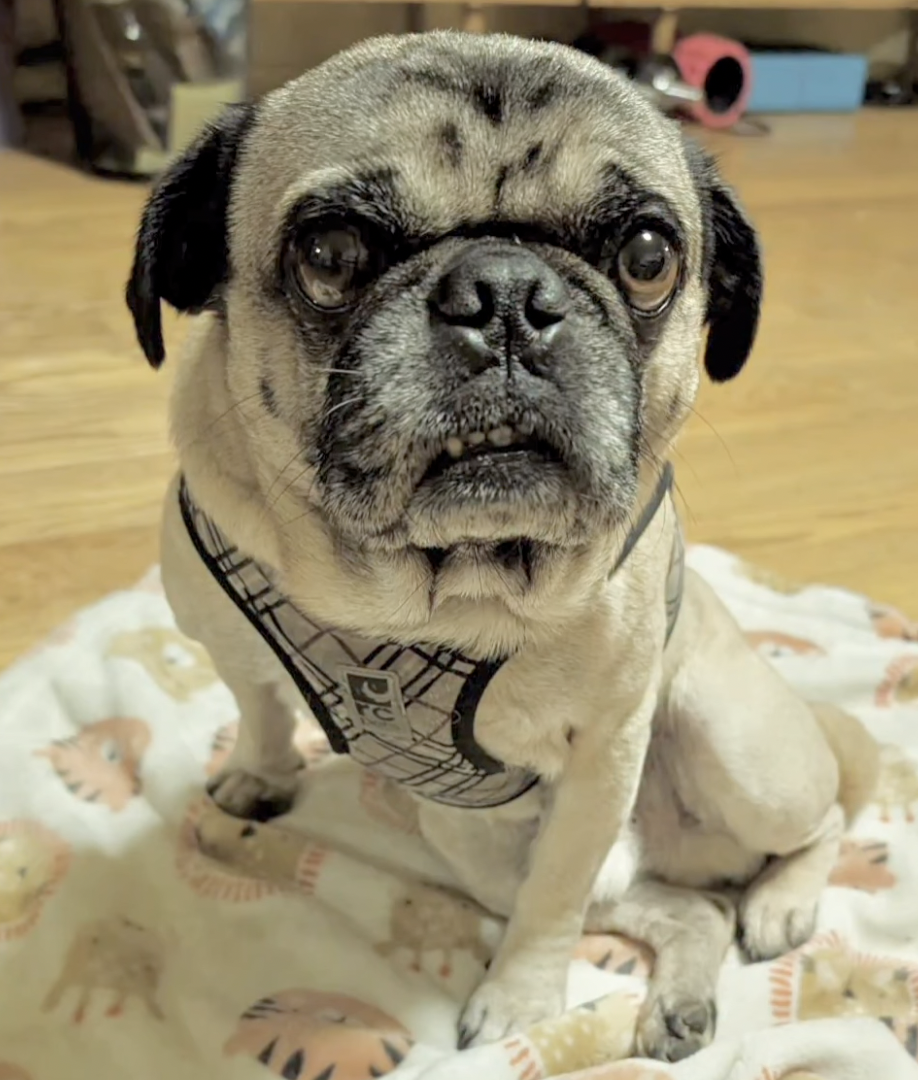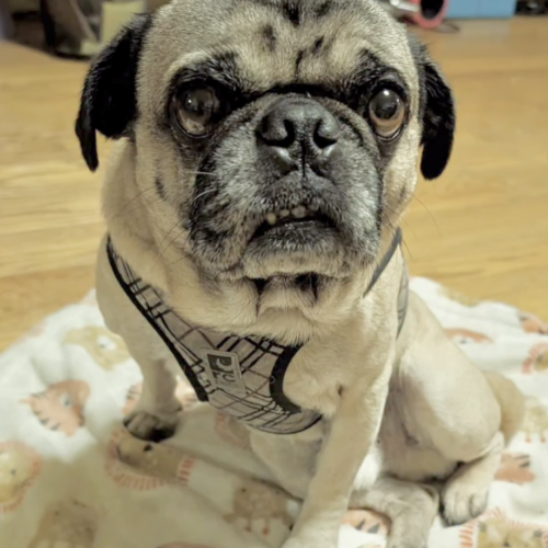 Buddy loves following his humans from room to room, napping in sunny spots, and showing off his signature pug snorts. He gets along well with people of all ages and enjoys calmer canine and feline friends. He’s playful in short bursts, then happy to curl up for a cozy snooze.