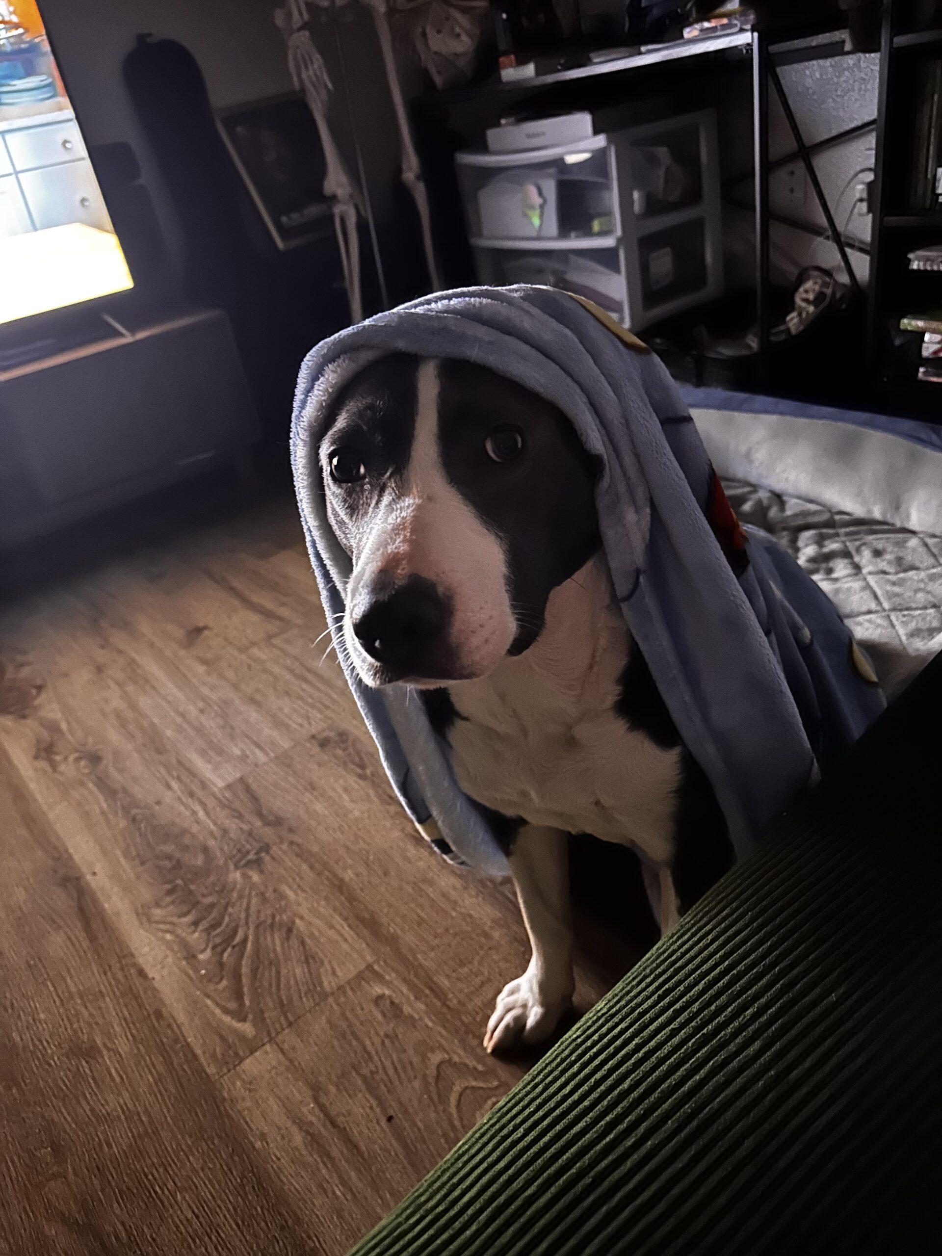Meet Nectarine — a sweet, affectionate, and eager to please 1.5 to 2 year-old Pitbull Terrier mix looking for her forever home. She was recently saved from the euthanasia list in Oakland, and she’s proven to be an incredibly loving, loyal, and resilient silly girl. She’s a great walker with no reactivity to dogs or people. She loves exploring everywhere with us. Nectarine adores people and bonds quickly to hers. She will make us pet and love her when she wakes up every morning. She is very smart and picks up training cues fast. She’s always eager to learn more. When she’s not training, she’ll keep you entertained with her goofy energy and curiosity. Nectarine has lots of energy and would thrive in a home with a yard, a decent amount of space, and/or someone who enjoys an active lifestyle. She’s currently living in an apartment and the noise above us makes her a bit anxious, so a quieter home environment would help her decompress. She is a typical enthusiastic, happy dog, so she may jump or be mouthy when excited, but it’s always playful — and with consistency, she’s already improving.