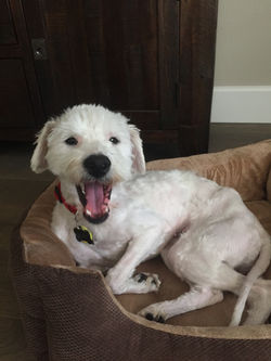 She seems to love most dogs and wants to play with them, she'd chase her little buddy in her foster home calling him to play. She's a very fast learner, and learned commands while in her foster home. She's still working on loose leash walking training, but with some training, she'll not only master those, but also learn some other neat tricks quickly! Just keep the treats coming!